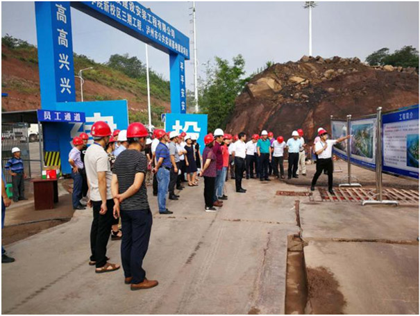 2019年6月13日,瀘州職業(yè)技術學院學校黨委書記何杰帶領團隊現(xiàn)場調研,視察了瀘職院三期工程及培訓中心,董事長石清華帶領項目部全體管理人員表示熱烈歡迎,由總經理馮濤及副總經理朱曉飛分別對三期工程、培訓中心進行細致講解,介紹每個單體項目的使用功能、現(xiàn)階段的進展情況及交付使用時間。施工工作得到學院團隊的一致好評,調研工作取得了圓滿成功!